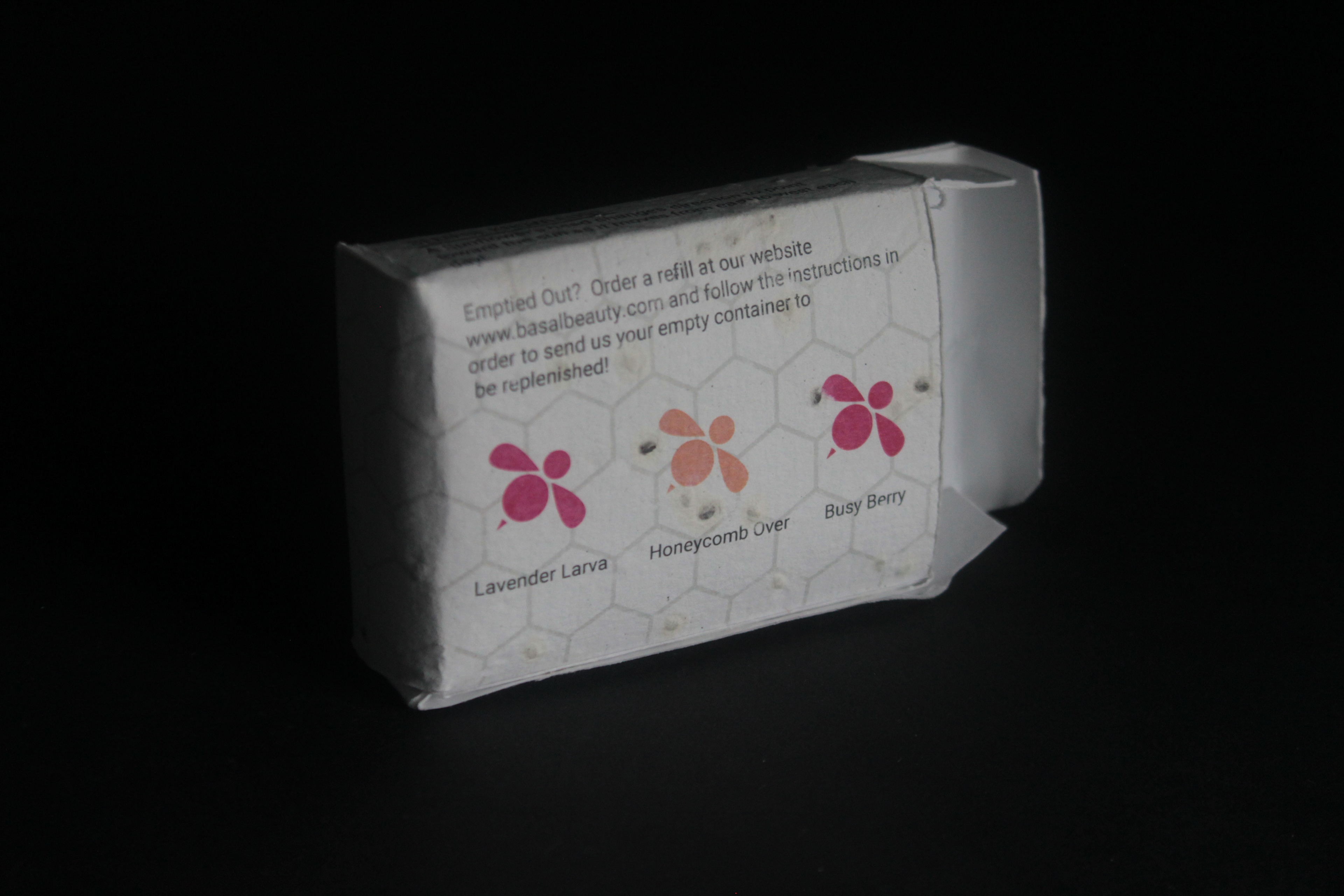 Package design for an environmentally friendly cosmetic brand, packaging includes tin containers as well as seed infused paper!